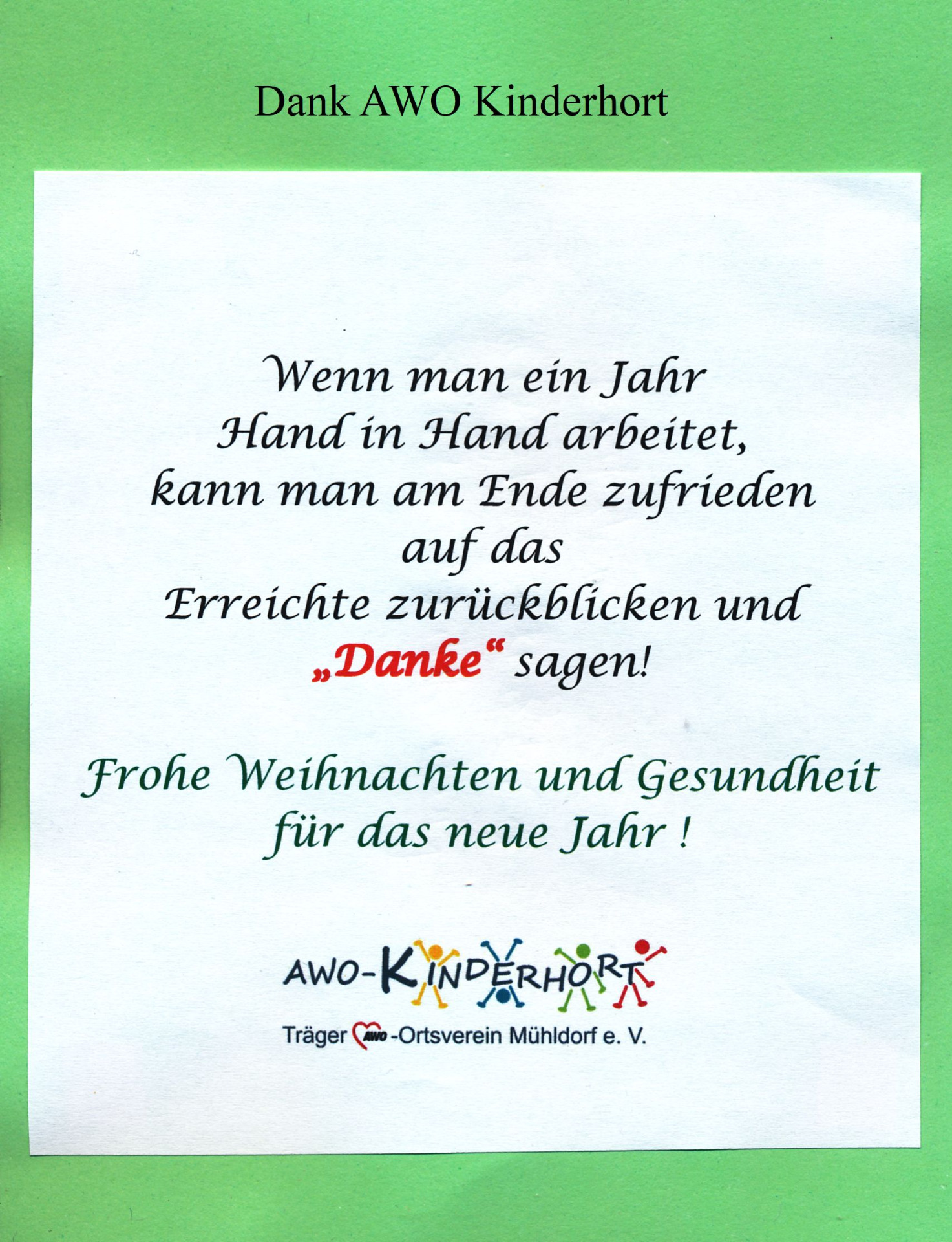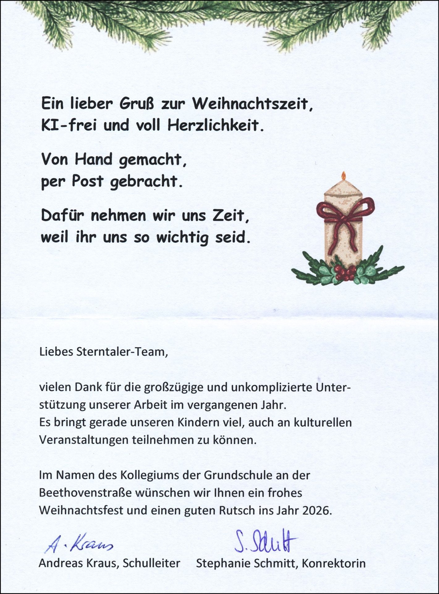 Dankeskarte von der Grundschule an der Beethovenstraße
